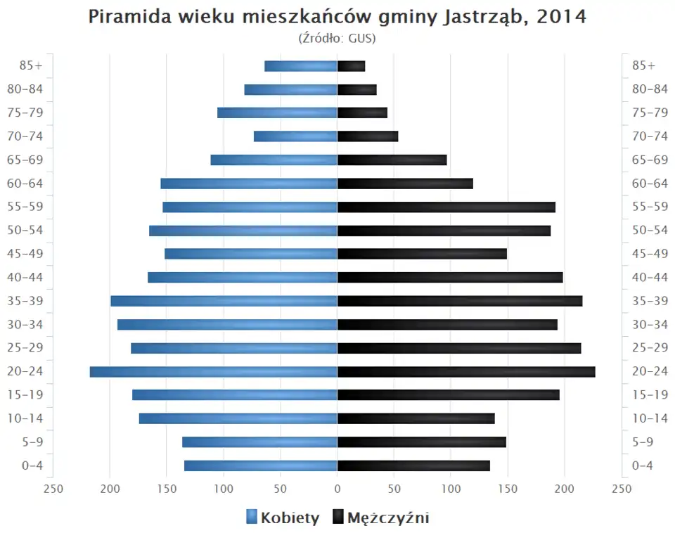 - Piramida wieku mieszkańców gminy Jastrząb w 2014 roku[8].