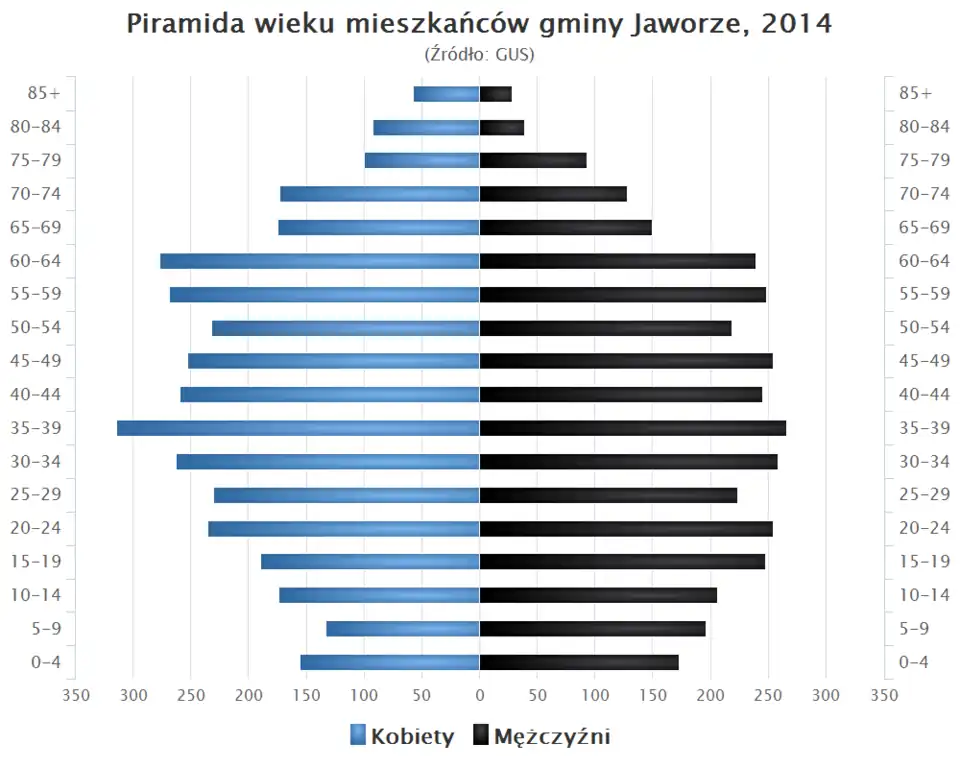 - Piramida wieku mieszkańców gminy Jaworze w 2014 roku[4].