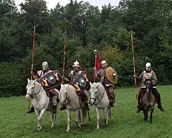 - ciężka jazda na wzorcu italsko-galijskim (promoti, scutarii, stablesiani, armigeri),