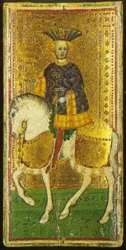 Talia do gry w tarota zawiera 4 jeźdźce, po jednym w każdym kolorze (trefl, karo, kier i pik).