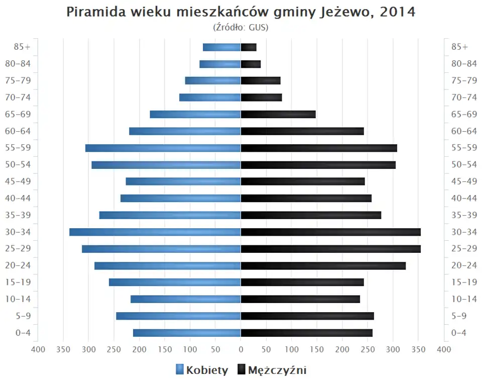 - Piramida wieku mieszkańców gminy Jeżewo w 2014 roku[3].