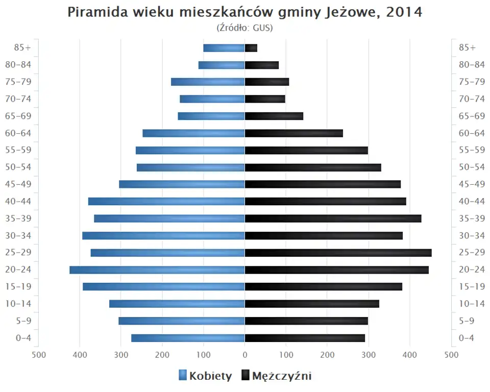 - Piramida wieku mieszkańców gminy Jeżowe w 2014 roku[6].