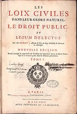 - Les Lois civiles dans leur ordre naturel; le Droit public, et Legum delectus, Paris, 1713