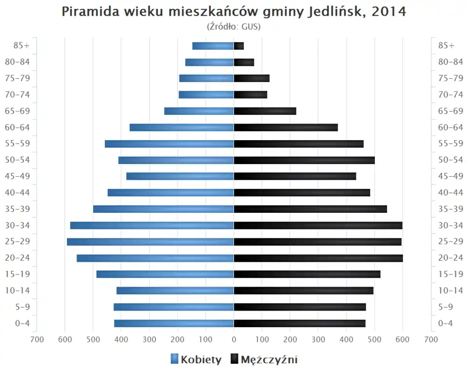 - Piramida wieku mieszkańców gminy Jedlińsk w 2014 roku[6].
