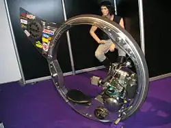 W 2003 roku amerykański konstruktor Jake Lyall zaprezentował pojazd R.I.O.T. Wheel[2] z napędem umieszczonym w kole i z siedzeniem kierowcy przed kołem jezdnym.