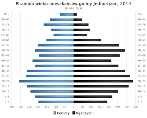 - Piramida wieku mieszkańców gminy Jednorożec w 2014 roku[2].