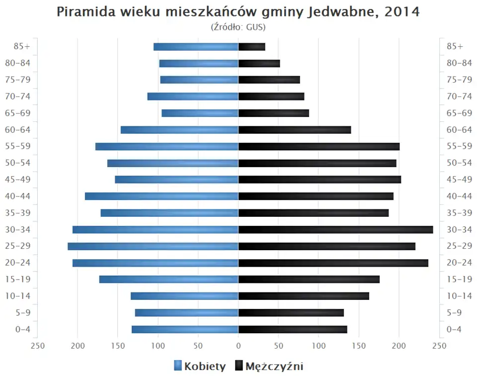 - Piramida wieku mieszkańców gminy Jedwabne w 2014 roku[1].