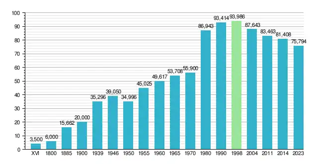 - Wykres liczby ludności Jeleniej Góry w tysiącach na przestrzeni ostatnich 5 stuleci[7]