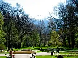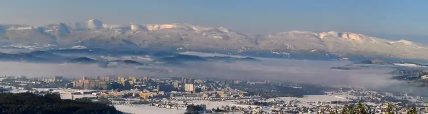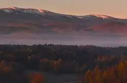 ![]() Widok na Jelenią Górę z Łysej Góry (szczyt w Górach Kaczawskich), w tle Śnieżne Kotły | |||||