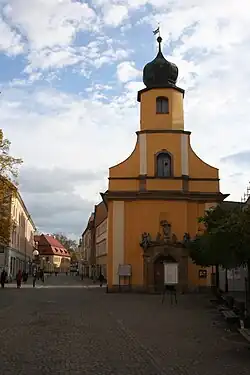 - kościół Podwyższenia Krzyża św. z lat 1709–1718 – największa świątynia w mieście, może w nim zasiąść 4020 osób, a drugie tyle zmieści się na stojąco. Zbudowany w latach 1709–1718 w wyniku zmuszenia cesarza przez króla szwedzkiego Karola XII do wyrażenia zgody na budowę przez protestantów sześciu tzw. „kościołów łaski”. Od 1957 r. jest kościołem katolickim, a zarazem garnizonowym. Nad główną kopułą góruje wysoka na 66 m wieża. Jako jeden z niewielu kościołów na świecie posiada organy umieszczone za ołtarzem, a nie nad wejściem głównym[29].