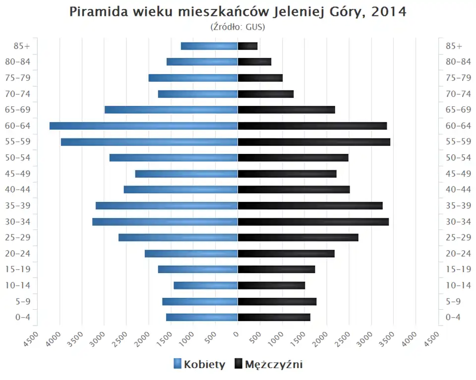 - Piramida wieku mieszkańców Jeleniej Góry w 2014 roku[10].