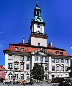 - ratusz – pochodzi z lat 1747–1749, wzniesiony został w stylu klasycystycznym. W podziemiach, gdzie do 1945 r. funkcjonowała restauracja, zachowały się ślady wcześniejszych budowli gotyckiej i renesansowej. Około 1910 r. budynek ratusza połączono z sąsiednimi kamienicami zwanymi „siedem domów” zaadaptowanymi na potrzeby magistratu. W średniowieczu służyły one jako apteka, garkuchnia, ławy chlebowe itp. W 2000 r. w pierwszej z tych kamieniczek odkryto studnię o głębokości 20 m. Warto wiedzieć, że w dawnych czasach w jeleniogórskim ratuszu stał drewniany posąg Bolesława Krzywoustego w szatach królewskich, pl. Ratuszowy