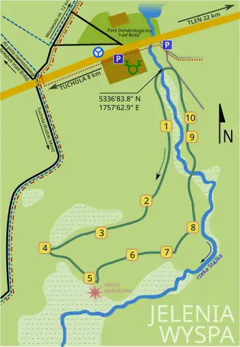 W pobliżu ścieżki przyrodniczo-dydaktycznej "Jelenia Wyspa" swój przebieg mają szlaki turystyczne: