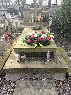 Spoczywa na cmentarzu Powązkowskim w Warszawie (kwatera 330, rząd 1, grób 7)[3].