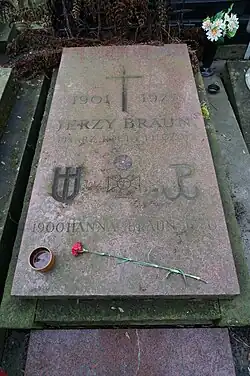 - ↑ Cmentarz Stare Powązki: JERZY BRAUN, [w:] Warszawskie Zabytkowe Pomniki Nagrobne [dostęp 2019-10-31].