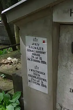 - ↑ Cmentarz Stare Powązki: HAGMAJEROWIE, [w:] Warszawskie Zabytkowe Pomniki Nagrobne [dostęp 2020-05-15].