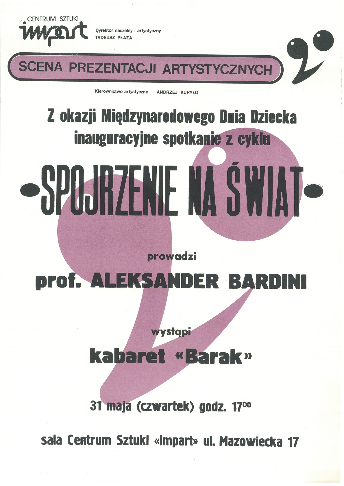 - ↑ Afisz: Scena Prezentacji Artystycznych: Spojrzenie na świat. Prowadzi prof. Aleksander Bardini.