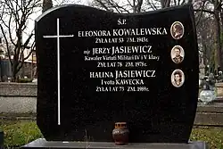 - ↑ Cmentarz Stare Powązki: ELEONORA KOWALEWSKA, [w:] Warszawskie Zabytkowe Pomniki Nagrobne [dostęp 2019-11-19].
