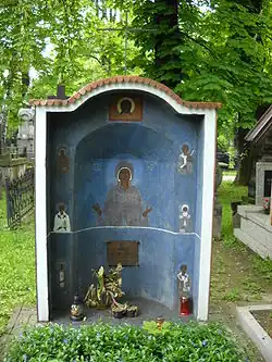 Został pochowany na cmentarzu prawosławnym w Warszawie, w pobliżu wejścia do cerkwi (kwatera 6, rząd 5, miejsce 6)[2]. Pomnik nagrobny ma formę cerkiewnej absydy, został wykonany z betonu używanego przy budowie soboru Świętej Trójcy w Hajnówce[2]. Autorem malowideł na jej wewnętrznej ścianie (postać Matki Bożej Orantki, a po bokach wizerunki świętych, m.in. św. Jerzego i św. Mikołaja) jest Jerzy Nowosielski[2].