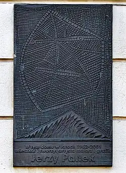 Tablica pamiątkowa na kamienicy, w której mieszkał.