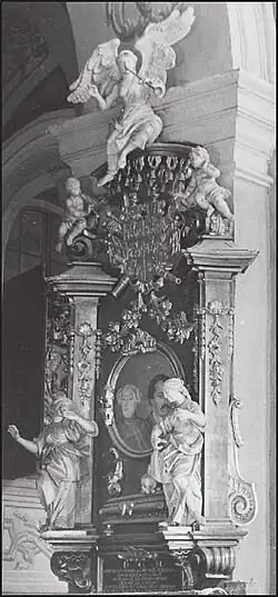 Około roku 1755, dwa lata po śmierci Marianny Zamoyskiej zostało wzniesione epitafium małżonków w kościele jezuitów we Lwowie. Zawieszono je na filarze (naprzeciw ołtarza św. Ignacego Loyoli) w arkadzie między nawą główną a północną nawą boczną, prowadzącą do przęsła, w którym znajdowało się wejście do ufundowanej przez Mariannę Zamoyską w 1738 roku nieistniejącej już dzisiaj kaplicy św. Benedykta.