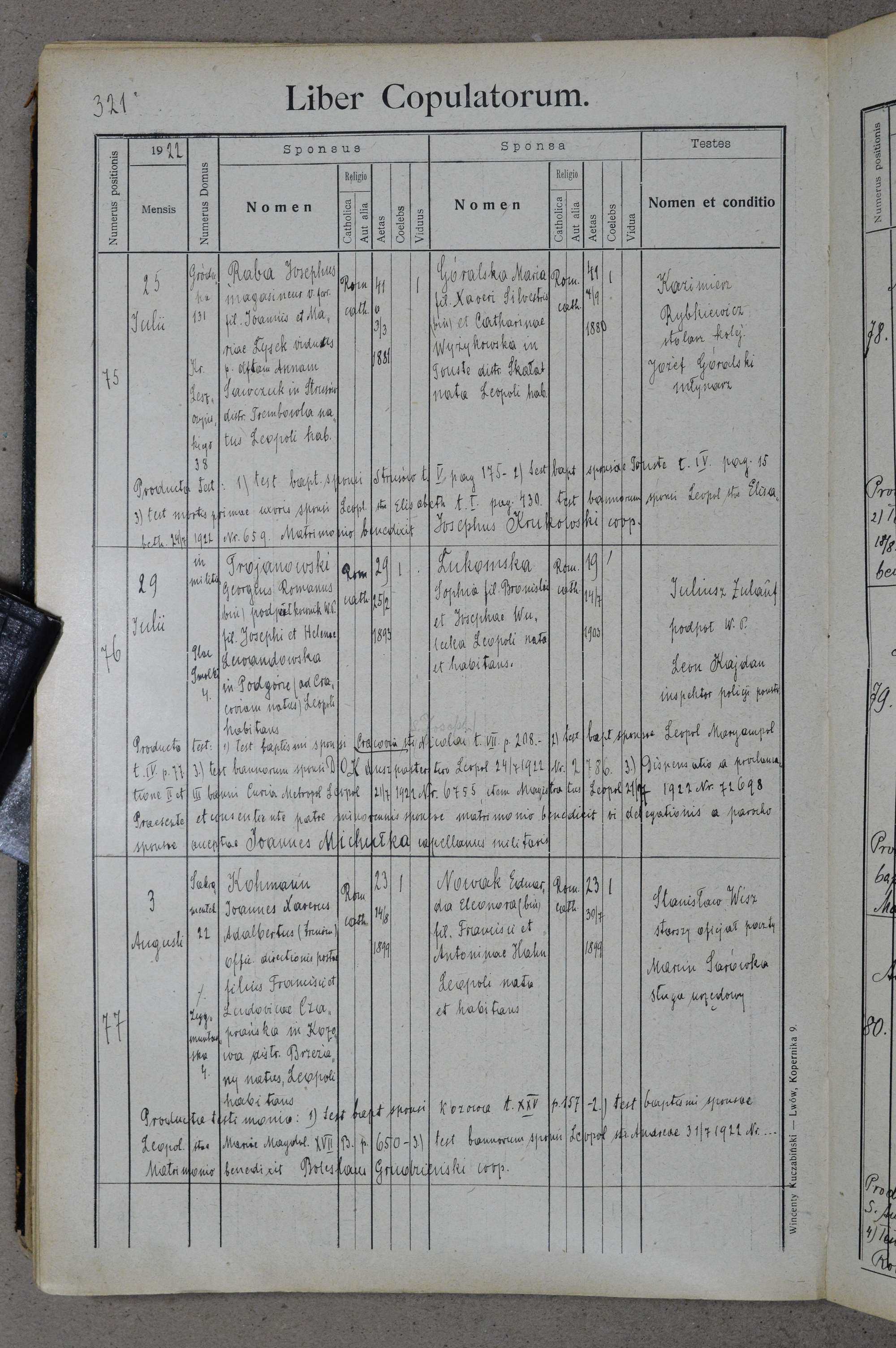 - ↑ Jan Michułka, akt ślubu 76/1922 z parafii św. Anny we Lwowie, Centralne Państwowe Archiwum Historyczne Ukrainy we Lwowie, 29 lipca 1922 [dostęp 2024-12-13] (łac.).