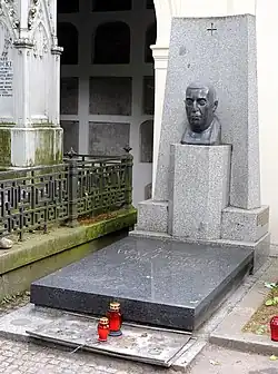 5 stycznia 2000 został pochowany na cmentarzu Powązkowskim w Warszawie, przy katakumbach (grób 80)[23]. W tym samym grobie pochowano również Mieczysława Jankowskiego[22].