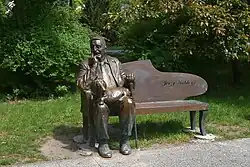- ↑ Jerzy Waldorff z jamnikiem Puzonem na ławce w Słupsku