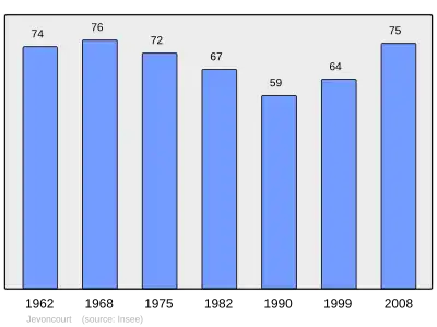 Według danych na rok 1990 gminę zamieszkiwało 59 osób, a gęstość zaludnienia wynosiła 18 osób/km² (wśród 2335 gmin Lotaryngii Jevoncourt plasuje się na 986. miejscu pod względem liczby ludności, natomiast pod względem powierzchni na miejscu 1154.).