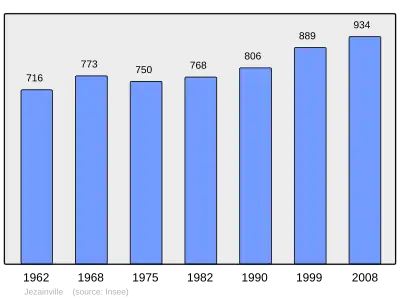 Według danych na rok 1990 gminę zamieszkiwało 806 osób, a gęstość zaludnienia wynosiła 44 osoby/km² (wśród 2335 gmin Lotaryngii Jezainville plasuje się na 436. miejscu pod względem liczby ludności, natomiast pod względem powierzchni na miejscu 224.).