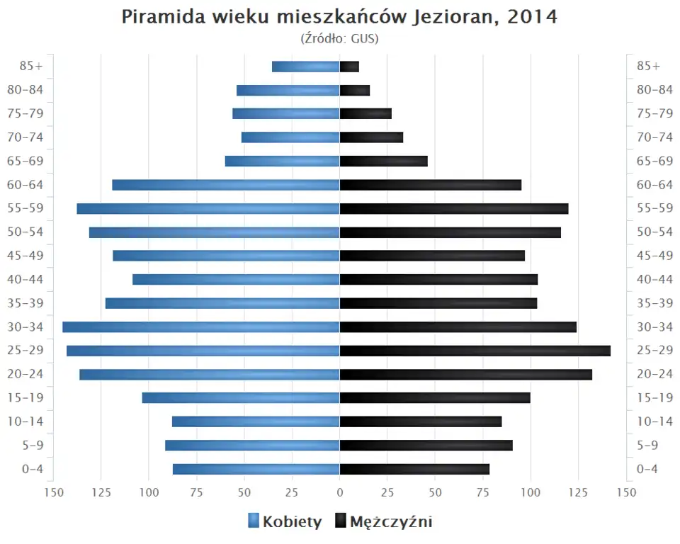 - Piramida wieku mieszkańców Jezioran w 2014 roku[8].