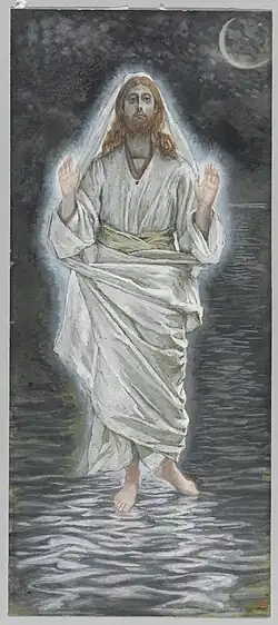 - Jezus chodzi po wodzie (Mt 14,25; Mk 6,48; J 6,19);