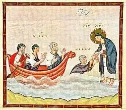 - sposobu znalezienia się uczniów w barce/barkach: u synoptyków to Jezus nakazuje Apostołom udanie się na drugi brzeg i czyni to zanim sam uda się na górę; u Jana inicjatywa odpłynięcia wychodzi od samych uczniów, czynią to po odejściu Mistrza na górę;
