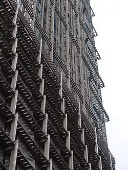- Rdzeń otoczony jest 8 wysokimi kolumnami z kompozytów oraz 8 stalowymi kolumnami zewnętrznymi