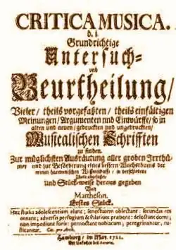 W latach (1722-1725) Mattheson wydawał pierwsze niemieckie czasopismo muzyczne Critica musica. Podobnie jak późniejsze czasopisma wydawane sporadycznie do połowy XVIII w., wypełniały go komentarze jednej osoby - tj. Matthesona - poświęcone rozmaitym tematom związanym z muzyką.
