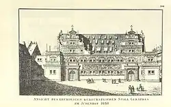 Budynek został zbudowany w stylu renesansowym w latach 1586–1590 według projektu architektów Paula Buchnera i Hansa Irmischa[2]. Powstał z inicjatywy saskiego elektora Krystiana I jako stajnia dla koni książęcych oraz wozownia[1][2]. Z uwagi na bliskość toru do turniejów rycerskich przy Stallhof w budynku ulokowano także książęcą zbrojownię. W latach 1722–1731 na polecenie elektora Fryderyka Augusta I (jednocześnie króla Polski pod imieniem August II Mocny) architekt Johann Georg Maximilian von Fürstenhoff przeprowadził przebudowę gmachu, w wyniku której dotychczas jednokondygnacyjny budynek zyskał drugą kondygnację, a ponadto dobudowano do niego wolnostojące, dwuskrzydłowe schody, zaś jego południową fasadę zwieńczono kartuszem z sasko-polskim herbem[2]. Syn i zarazem następca Fryderyka Augusta I, Fryderyk August II (jednocześnie król Polski jako August III Sas) zarządził ulokowanie w przebudowanym budynku Drezdeńskiej Galerii Obrazów. W związku z tym na górnej, przeznaczonej dla tej placówki kondygnacji dokonano w latach 1744–1746 pod nadzorem architekta Johanna Christopha Knöffela kilku remontów – przede wszystkim wstawiono wysokie, łukowato zakończone okna w celu lepszego doświetlenia wystawy obrazów[2]. Galeria w gmachu została otwarta w 1747 roku i działała w nim do 1856 roku, kiedy to przeniesiono ją do wchodzącego w skład Zwingeru budynku zaprojektowanego przez Gottfrieda Sempera przy Theaterplatz[3][4]. Z kolei w okresie od 1794 do 1857 roku na parterze mieściła się wystawa reprodukcji starodawnego wyposażenia gabinetów[2].