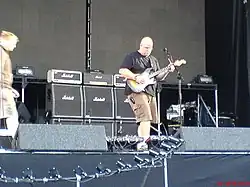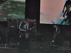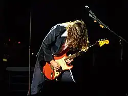 ![]() John Frusciante wraz z zespołem Red Hot Chili Peppers podczas koncertu na Kia Forum 31 sierpnia 2006. Na zdjęciu z gitarą Fender Stratocaster | |