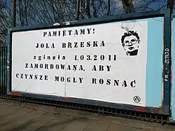 ![]() Graffiti upamiętniające Jolantę Brzeską na kamienicy przy ul. Nabielaka 9 | |