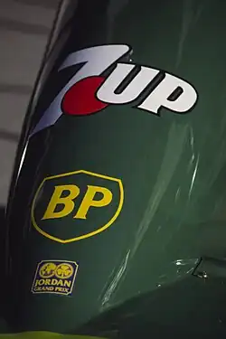 Po nieudanych negocjacjach z Camelem, Jordan zdecydował się na współpracę z marką 7 Up, która w Irlandii była bardzo popularnym napojem gazowanym, przez co samochód zmienił barwy na zielone[2]. Zainteresowany sponsorowaniem zespołu był również koncern Kodak, który ostatecznie odmówił ze względu na to, że zielony kolor kojarzył się z konkurencyjnym koncernem fotograficznym, jakim był Fujifilm, choć Jordan obiecał zmienić malowanie tylnego skrzydła na żółto[2]. Zainspirowany obiekcjami Kodaka Jordan poleciał do Tokio celem odbycia rozmów z Fujifilmem, zabierając także samochód wyścigowy[2]. Japońska firma była bardzo zainteresowana sponsorowaniem zespołu Formuły 1, poza tym również marka idealnie wkomponowała się w samochód[2].