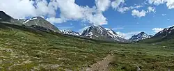 - Park Narodowy Jotunheimen – na pierwszym planie kamienny kopczyk, norweska metoda oznaczania szlaku turystycznego