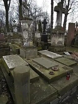 Spoczywa na cmentarzu Powązkowskim w Warszawie (kwatera 23-3-25/26)[7].