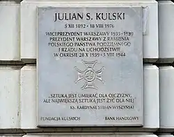 - ↑ Cmentarz Stare Powązki: JULIAN KULSKI, [w:] Warszawskie Zabytkowe Pomniki Nagrobne [dostęp 2019-12-10].
