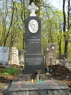 Grób Juliana Niedźwiedzkiego z biegiem lat uległ zatarciu. Jego ponownej budowy podjęto się po 1993 roku. Obecny nagrobek wykonany z granitu wzniesiono, umieszczając na nim popiersie Niedźwiedzkiego, lata życia, oraz napis w języku ukraińskim w którym obok treści, że był rektorem Politechniki widnieje informacja, że nagrobek ten wzniesiono ukraińskiemu patriocie.