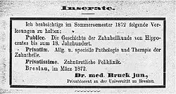 - Zajączkowski T, Zamann AP, Zamann AM. Julius Bruck (1840-1902) – Wrocławski dentysta. Endoskopia między Ph. Bozzinim a M. Nitze. „Urologia Polska”. 49 (1), 1996.