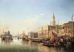 - Wenecja: Riva degli Schiavoni, na zachodzie poza Punta della Dogana i Santa Maria della Salute, 1844