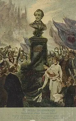 Juliusz Słowacki (ur. 4 września 1809 w Krzemieńcu, zm. 3 kwietnia 1849 w Paryżu[1]) – polski poeta, dramaturg, filozof i epistolograf. Obok Adama Mickiewicza i Zygmunta Krasińskiego określany jako jeden z polskich wieszczów narodowych. Twórca filozofii genezyjskiej (pneumatycznej), epizodycznie związany z mesjanizmem polskim, był też mistykiem. Obok Adama Mickiewicza uznawany powszechnie za największego przedstawiciela polskiego romantyzmu.