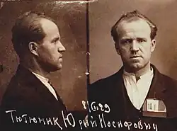 ![]() Jurko Tiutiunnyk po aresztowaniu przez OGPU w 1929 roku | |