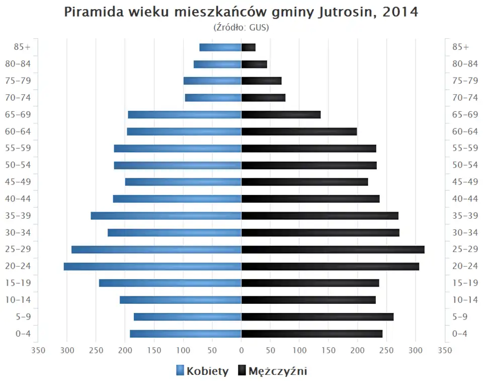 - Piramida wieku mieszkańców gminy Jutrosin w 2014 roku[1].