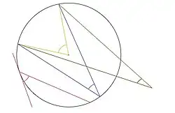- Miara kąta dopisanego wycinającego dany łuk jest równa mierze kąta wpisanego opartego na tym łuku.
