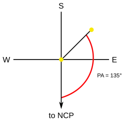 Kąt pozycyjny – kąt używany w astronomii najczęściej przy opisie gwiazd wizualnie podwójnych. Definiuje się go jako kąt pomiędzy łukiem koła godzinnego przechodzącym przez jaśniejszy składnik układu (1) i północny biegun niebieski a łukiem koła wielkiego na sferze niebieskiej łączącym ten składnik ze składnikiem słabszym (2).